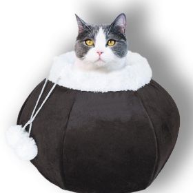 Touchcat 'Claw-ver Nest' Rounded Scratching Cat Bed w/ Teaser Toy - Black