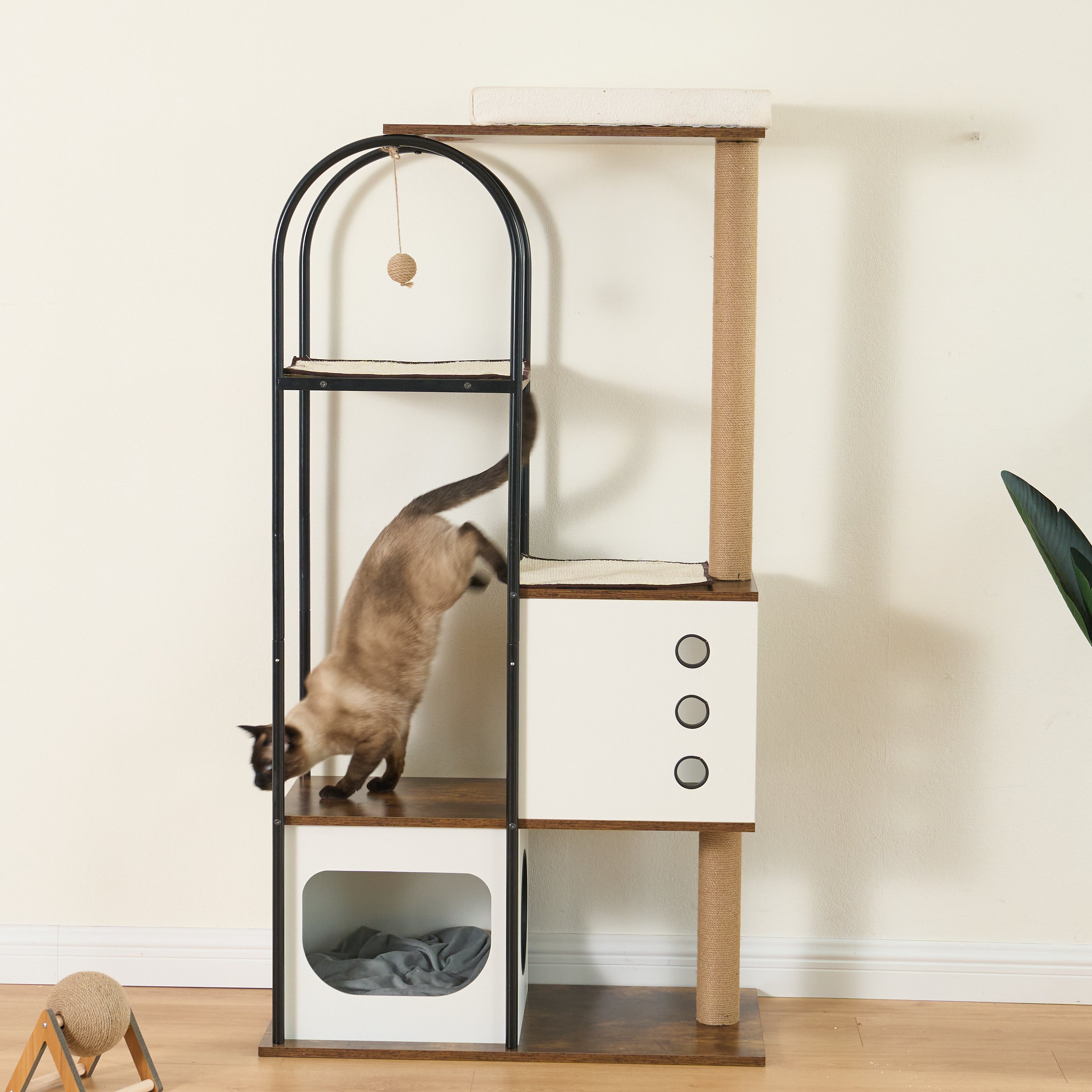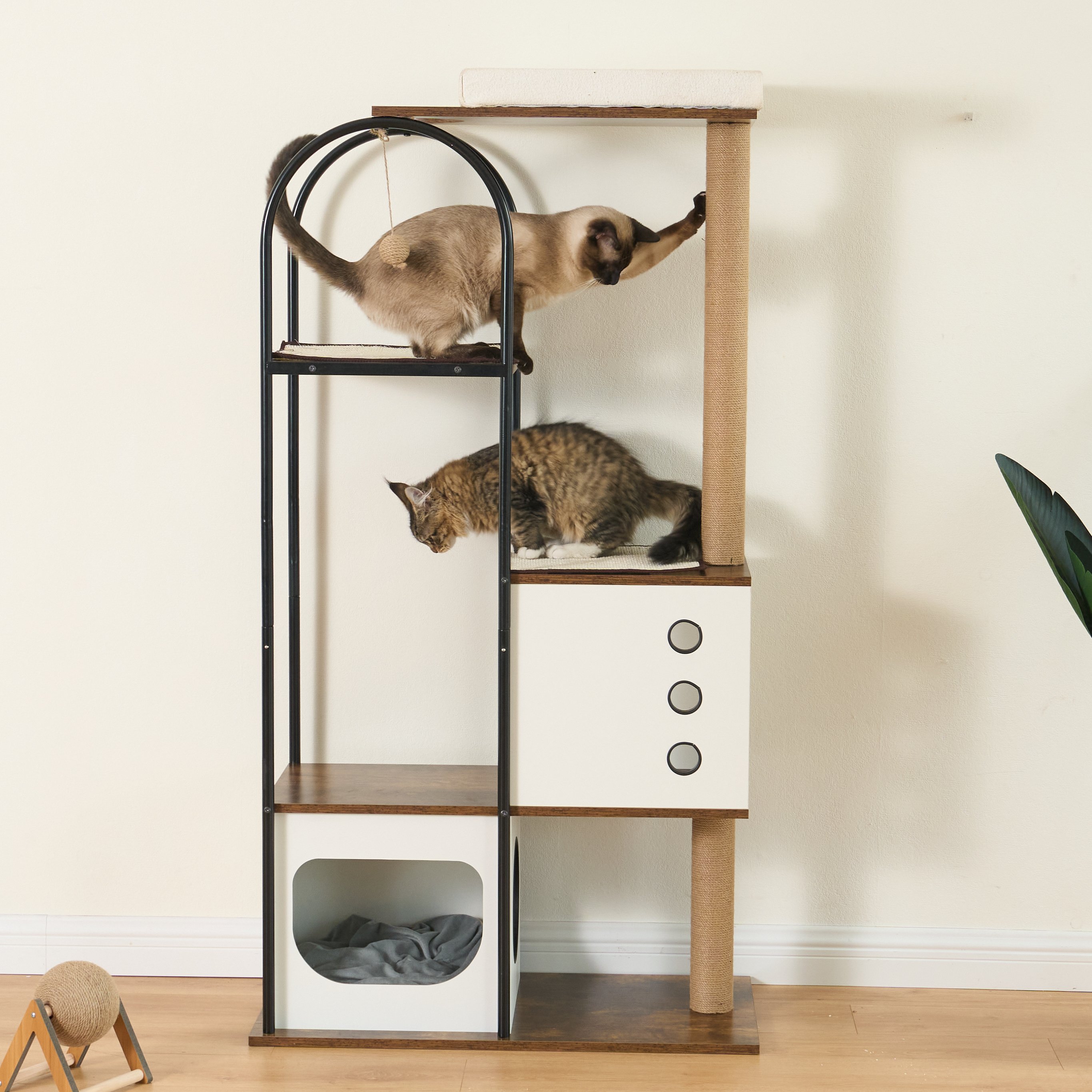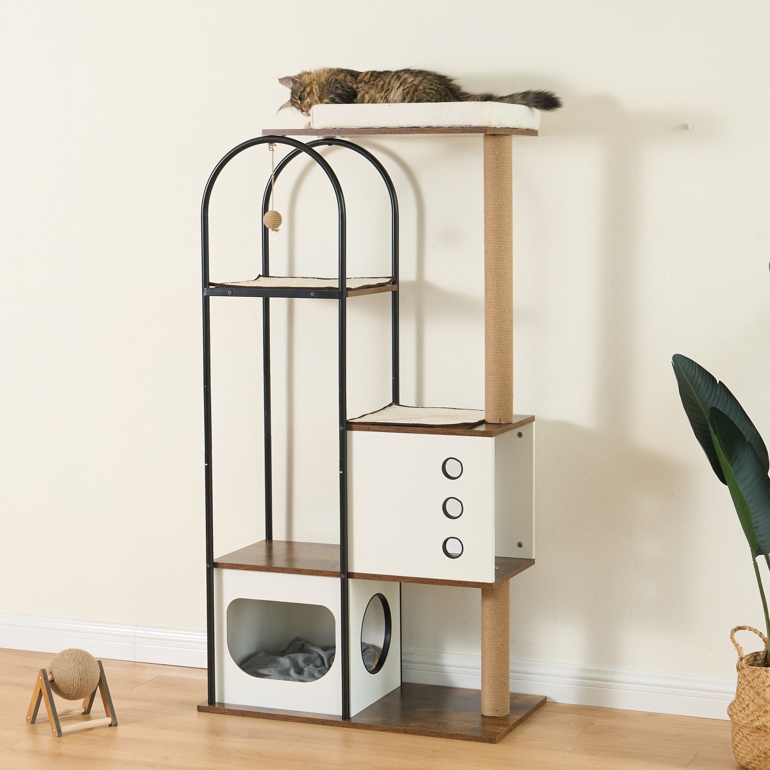 3.Modern Style: With rectangular design and curved steel tubes, this cat tree condo is sophisticated and modern. Whether you put it in your living room, bedroom or balcony, anywhere, this cat tree will give your space an upgrade.