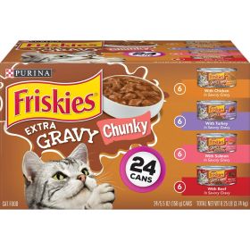 Purina Friskies Extra Gravy Chunky Wet Cat Food Variety Pack, 5.5 oz Cans (24 Pack)