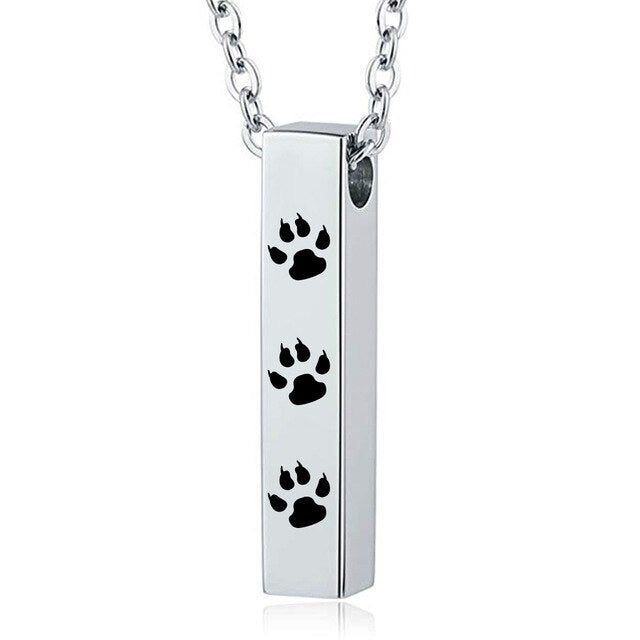 Memorial Pet Ashes Necklace Paw Print - Silver