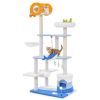 3.Versatile Play Center: The ocean-themed cat tree is designed with a variety of interactive toys, from the alluring sisal rope for them to scratch and fish-shaped balls that ignite their hunting instincts. And the spring ball will provide extra entertainment.