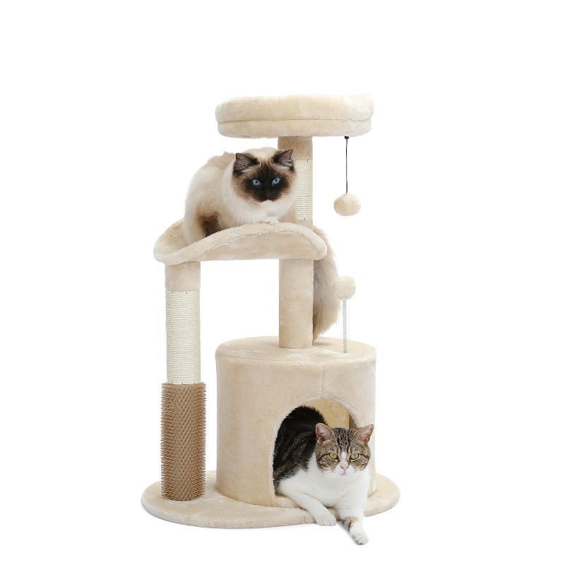 The base and the top are covered with soft carpet that feels good on paws.