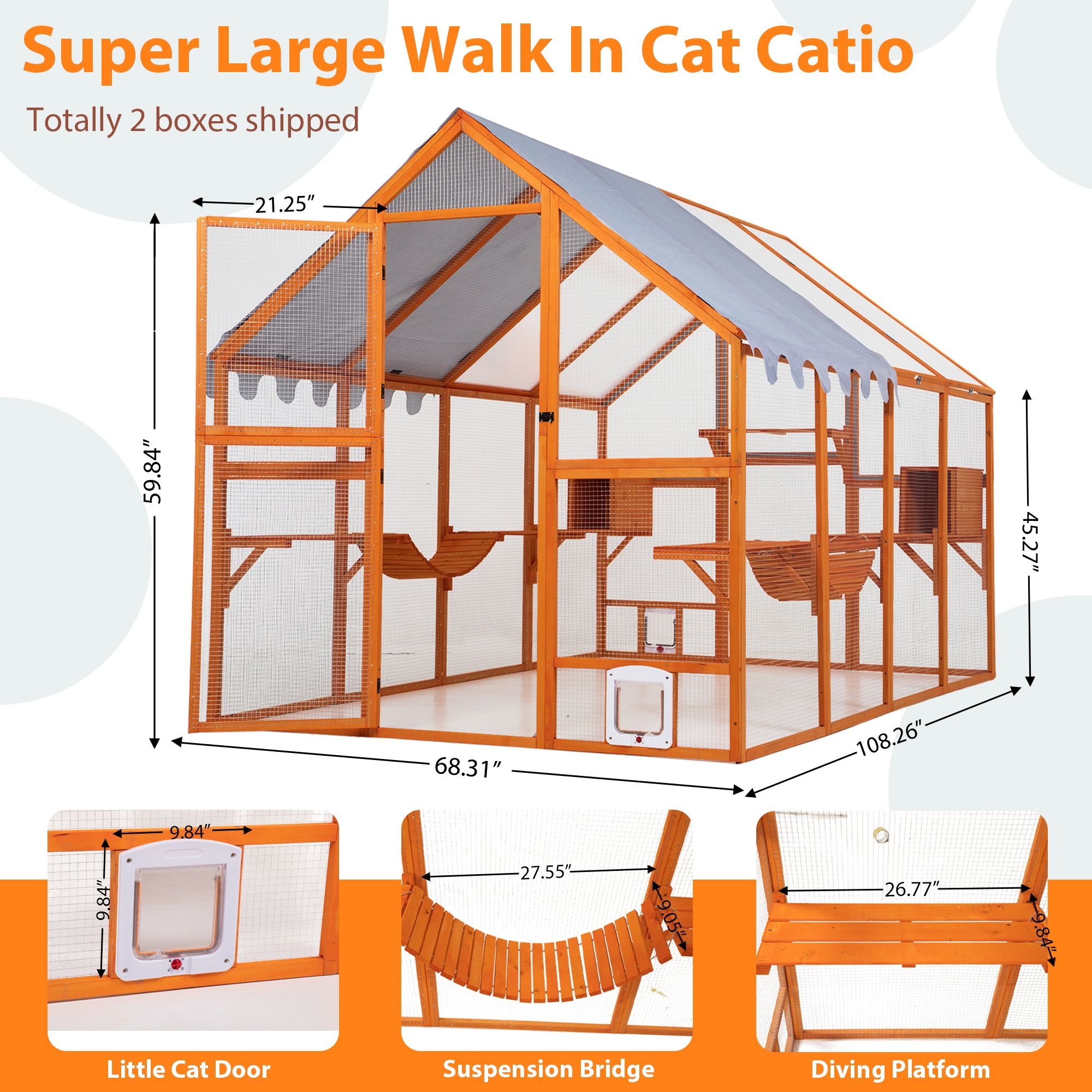 Note: This cat catio is delivered in 2 boxes and arrival time may vary. If you have any questions about the package, please feel free to contact us