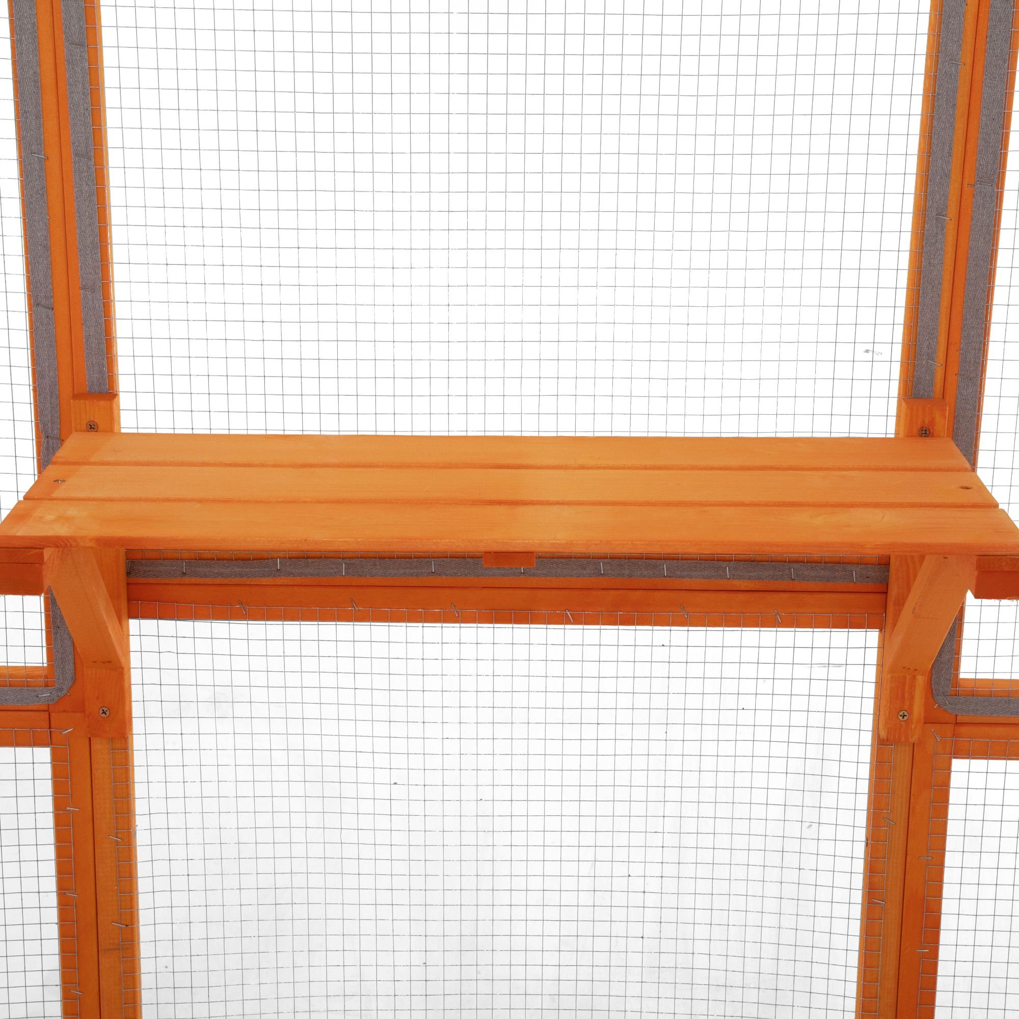 [Reliable Construction]: Constructed with premium mongolian scots pine, this solid outdoor cat cage is designed to accommodate multiple felines and other diminutive creatures comfortably. 4 substantial galvanized meshes at the top enhance the enclosure's air circulation capabilities.