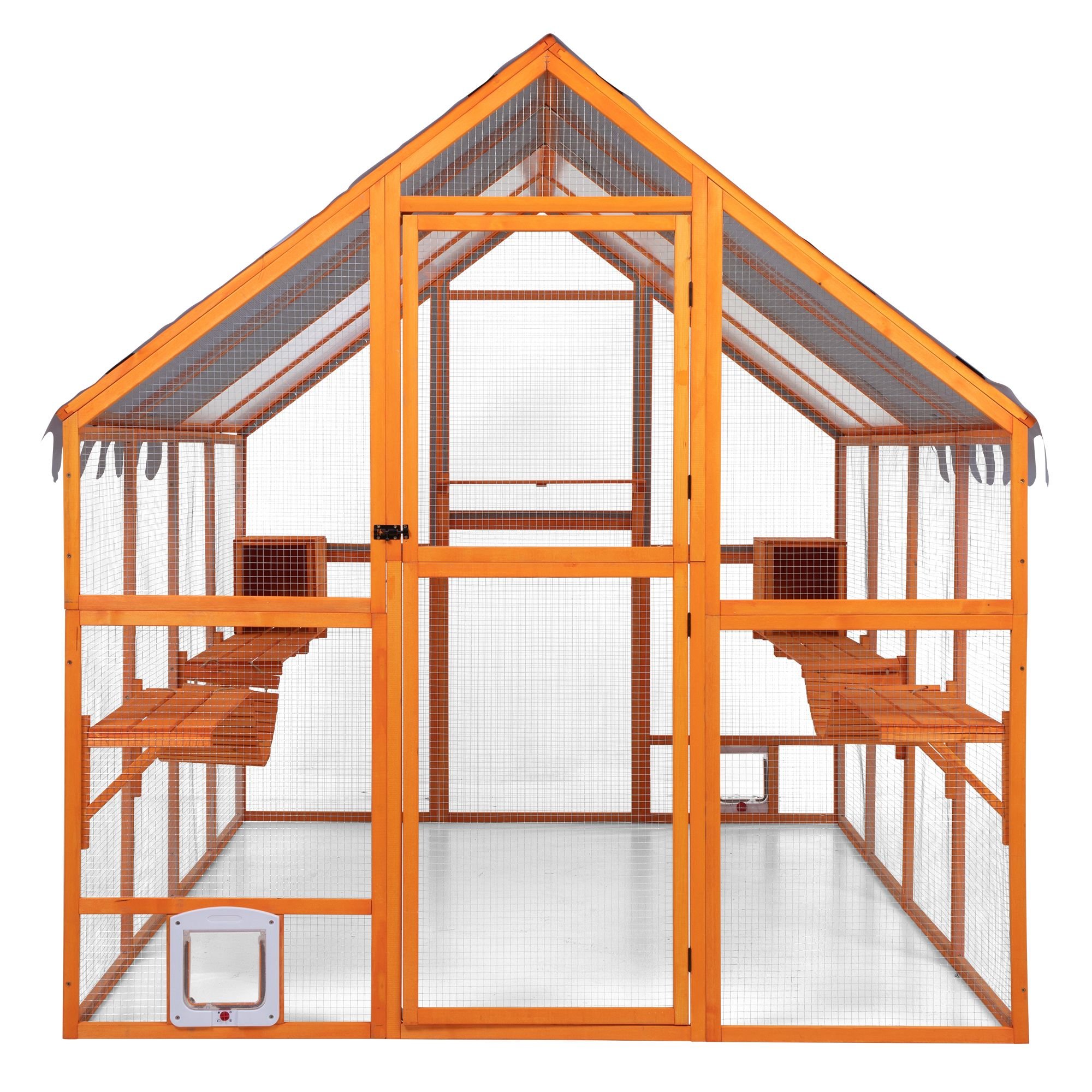 [Convenient Pet Engagement]: With an expansive front door, this cat patio facilitates effortless entry and exit, fostering greater interaction with your pets. The cat flap located in the bottom provides your cats with a smooth transition between the interior and exterior environments.