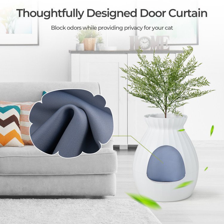 1.Innovative Plant Litter Box Furniture: This hidden planter litter box enclosure not only serves as a practical cat litter box but also doubles as a perfect home decoration. Furthermore, it comes with a decorative artificial plant and several glossy pebbles, making it an attractive addition to any living space.