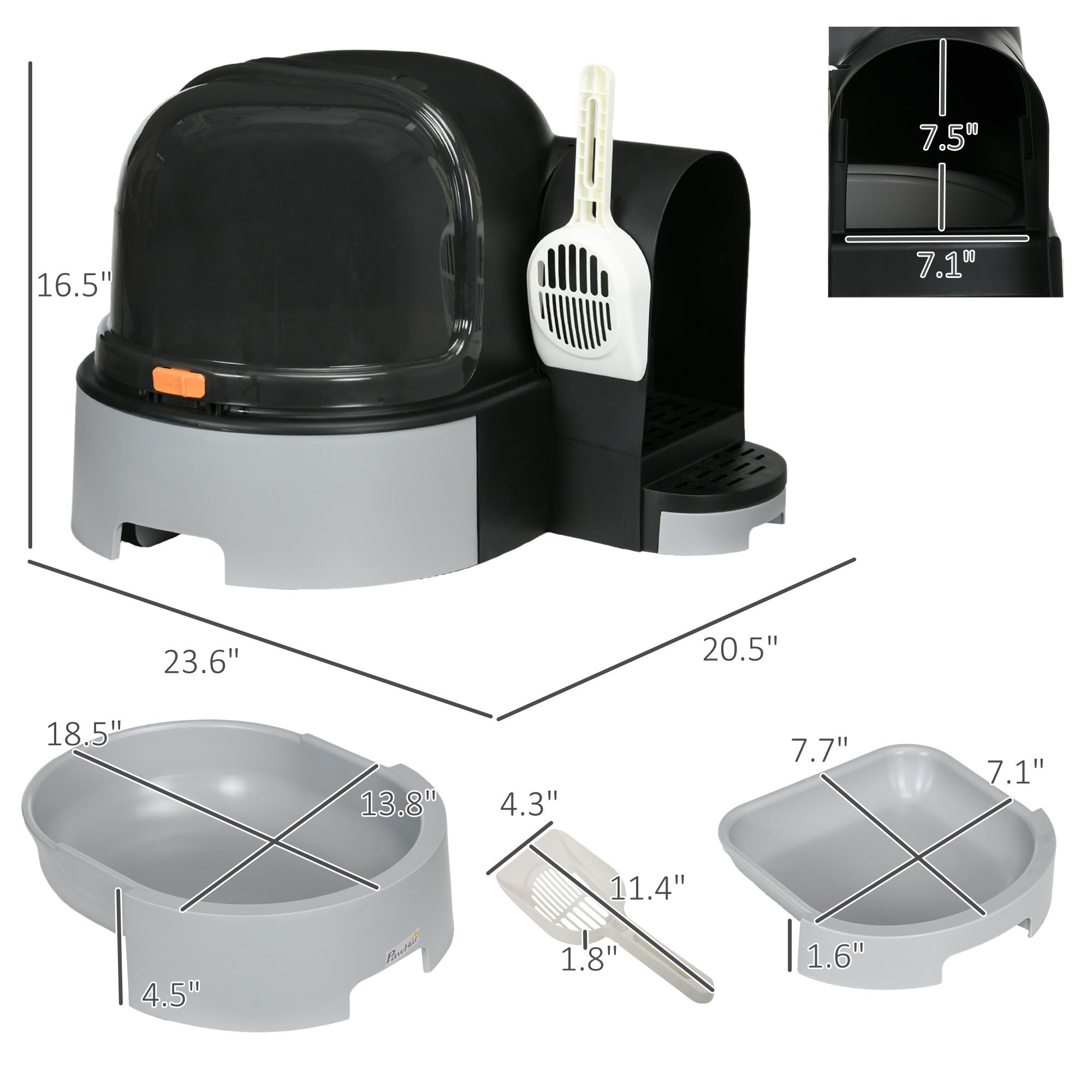 Home > Cat Litter Box Easy to Clean Open with Scoop, Gray - Gray