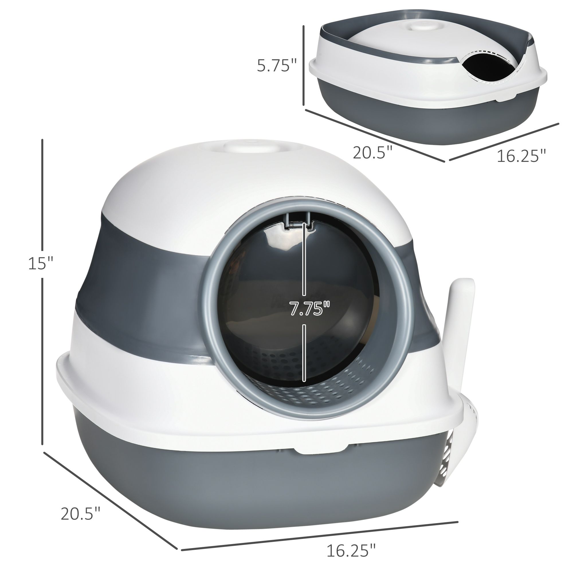 Dome Covered Cat Litter Box with Lid, White and Gray - White