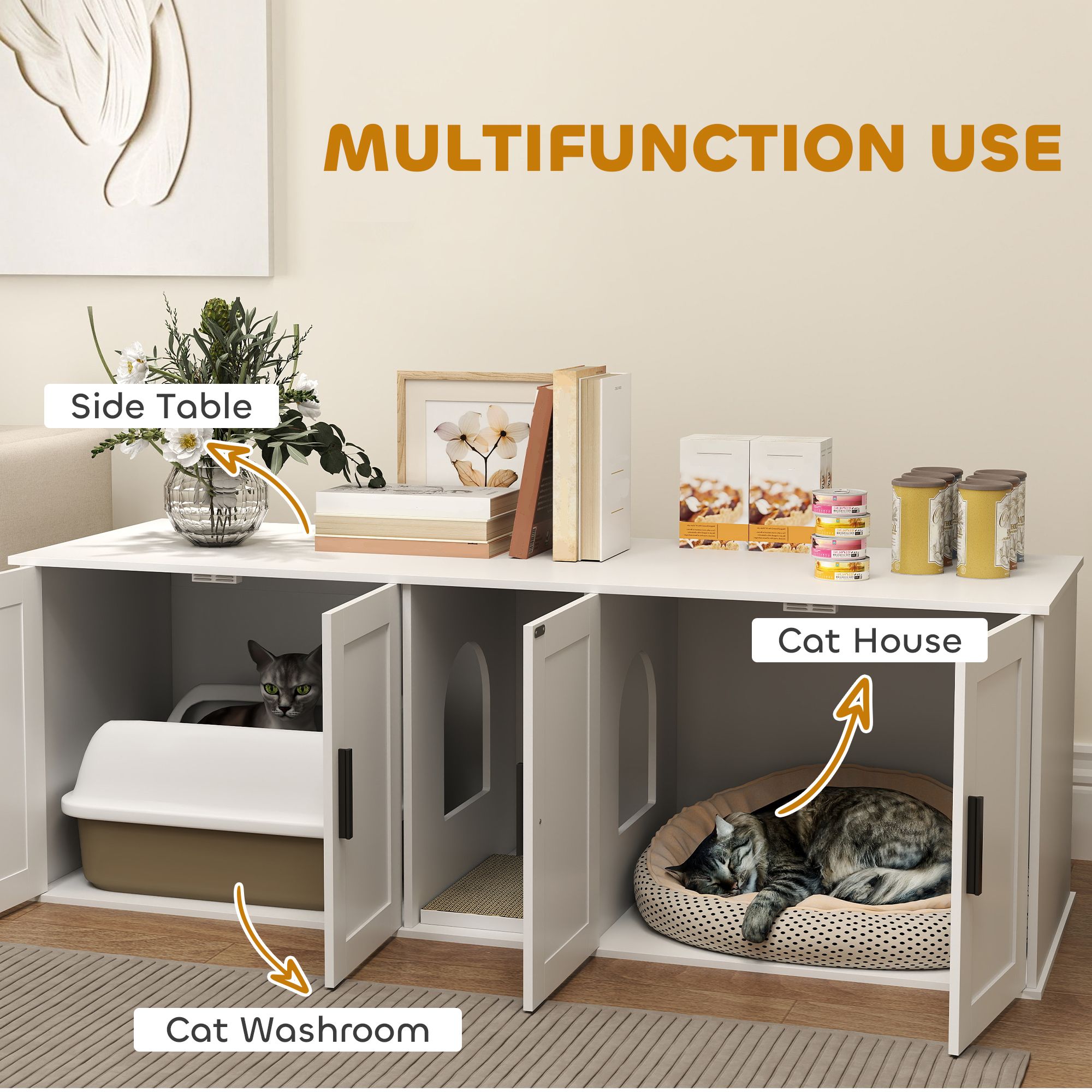 Cat Litter Box Enclosure with Double Room, Scratching Mat for 2 Cats, 57" x 19" x 20", White - White Cat Litter Box Enclosure with Double Room, Scratching Mat for 2 Cats, 57" x 19" x 20", White - White Cat Litter Box Enclosure with Double Room, Scratching Mat for 2 Cats, 57" x 19" x 20", White - White Cat Litter Box Enclosure with Double Room, Scratching Mat for 2 Cats, 57" x 19" x 20", White - White Cat Litter Box Enclosure with Double Room, Scratching Mat for 2 Cats, 57" x 19" x 20", White - White Cat Litter Box Enclosure with Double Room, Scratching Mat for 2 Cats, 57" x 19" x 20", White - White