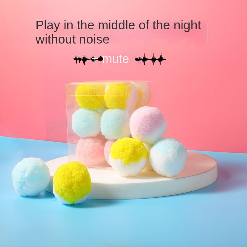 Cat bite resistant mute ball elastic plush mute ball double color plush self hi ball toy - Double color - 12 in a box 4.5CM colorful balls
