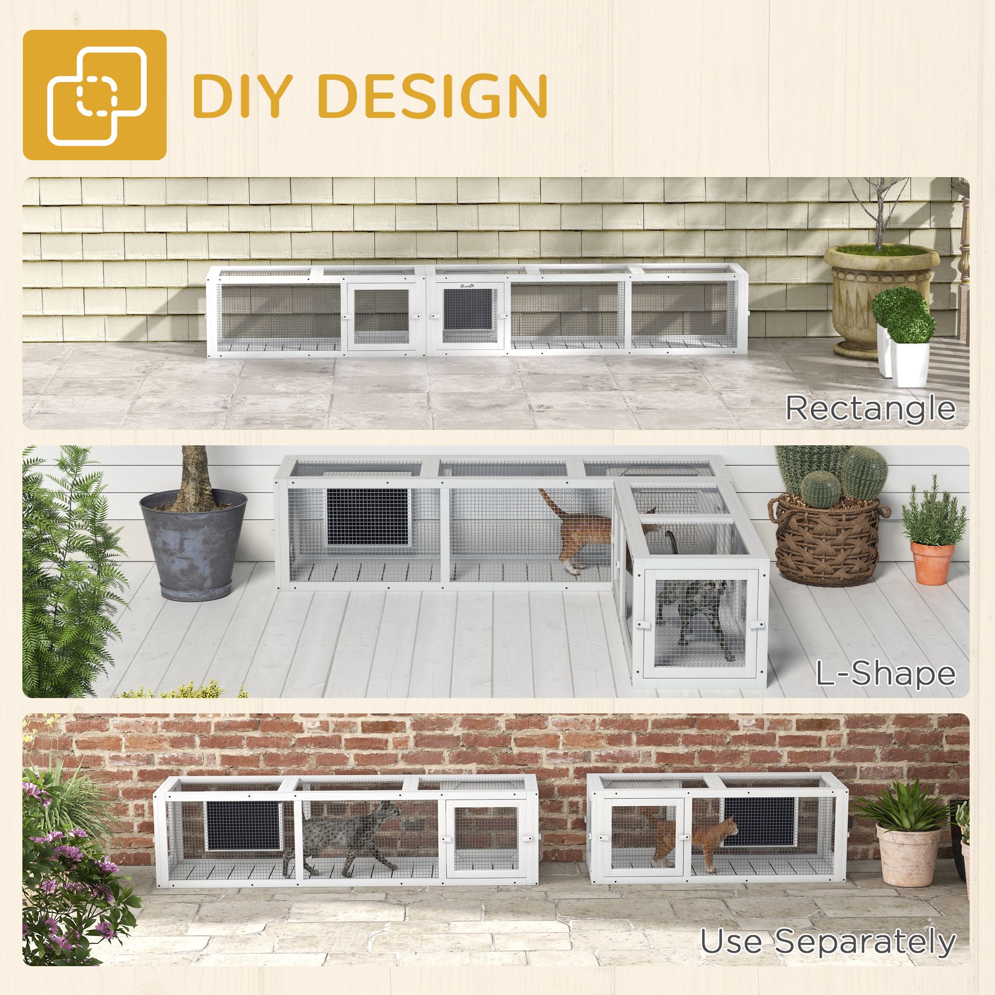 PawHut Cat Tunnel Outdoor, Wooden Cat Tube with Combinable Design, 8 Doors, 98" Cat Toys for Kitty, Puppy, Pet, House, Window, Cage, White - as Pic