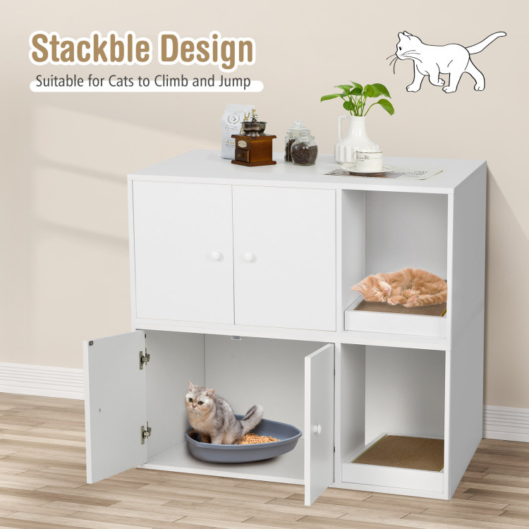 1.Multifunctional Uses: The functional cat cabinet with 2 doors can hide kitty little box and cat house which can be used either as the little box enclosure, or as the cat lounging house, or as the coffee table or side cabinet. Besides, its stylish appearance can perfectly blend into your home decor.