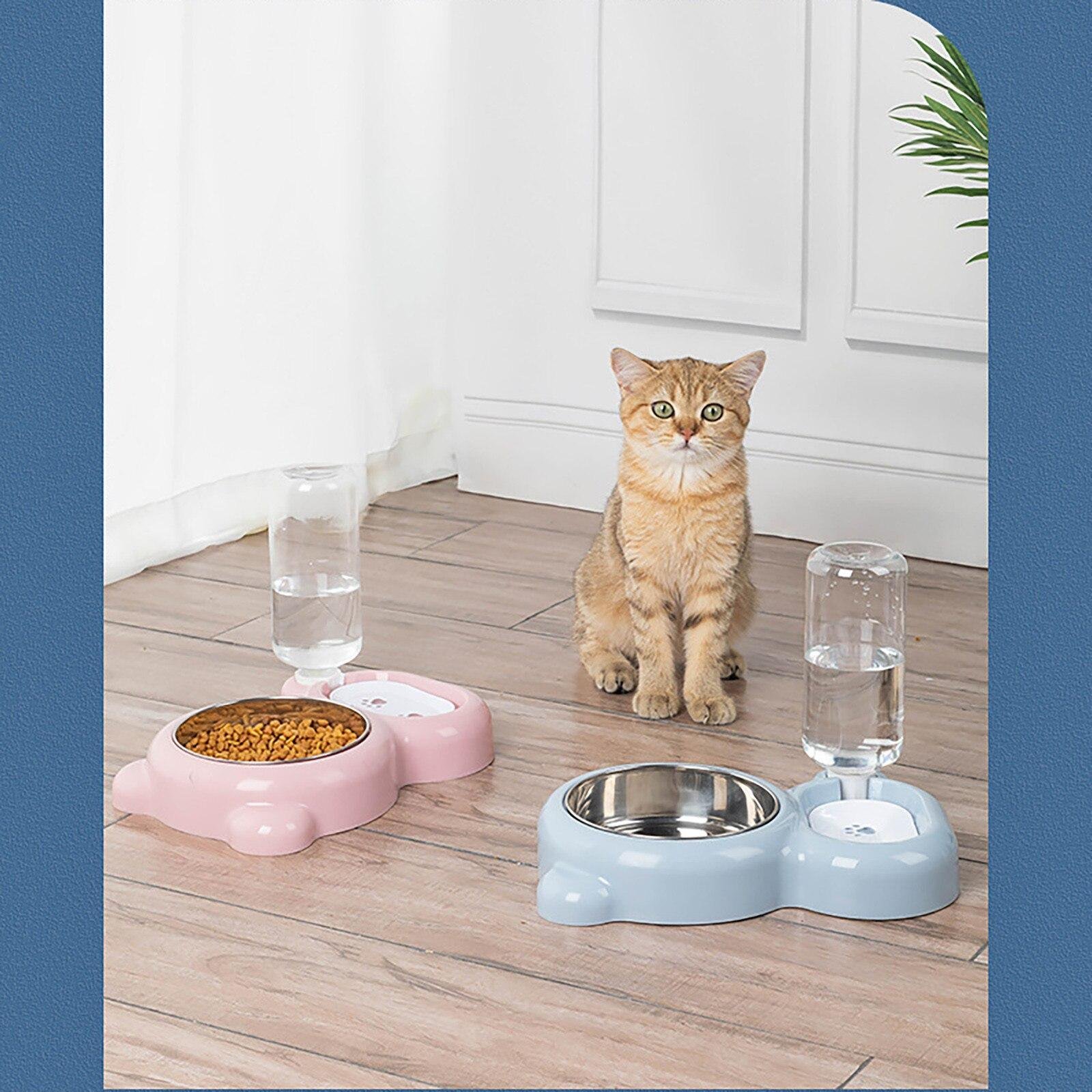 Pet Cat Bowl Stainless Steel Multifunctional Dog Cat Bowl With Water Bottle Drinking Water Feeding Bear Bowl gatos