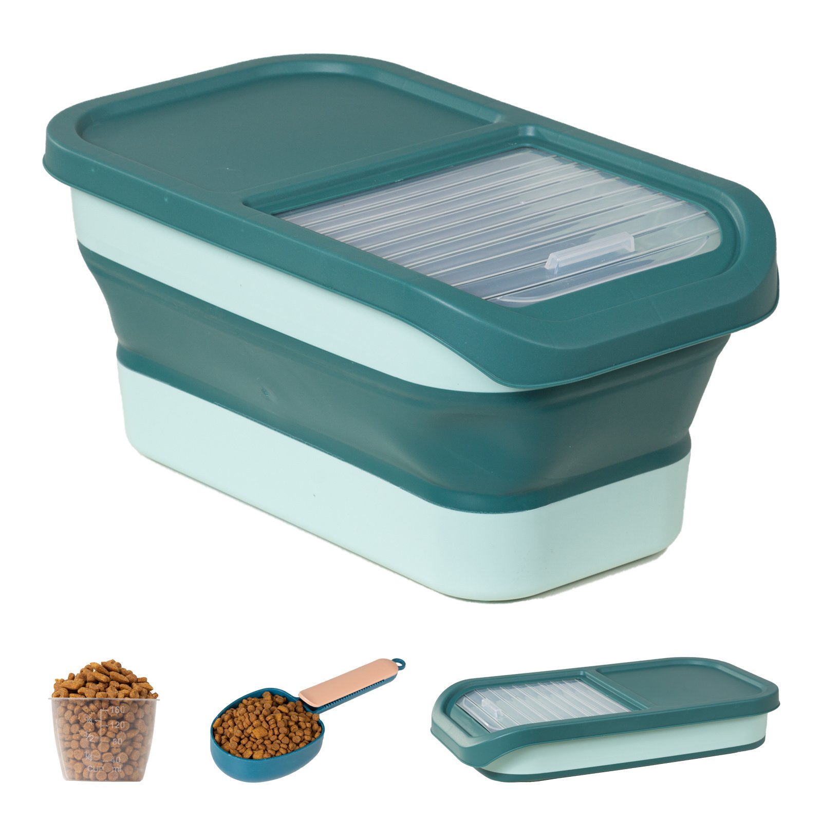 Home > 10-13Lbs Dog Food Storage Container,Scoop and Measuring Cup, Folding Pet Food Container with Lids, Pet Food Storage Containers Dry Food for Dog, Cats
