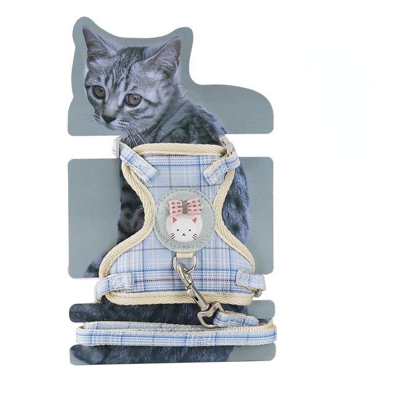 Home > Adjustable Cats Leash Chest Strap Grid Printing Pet Outdoor Traction Rope Collars for Kitten Puppy Accessories