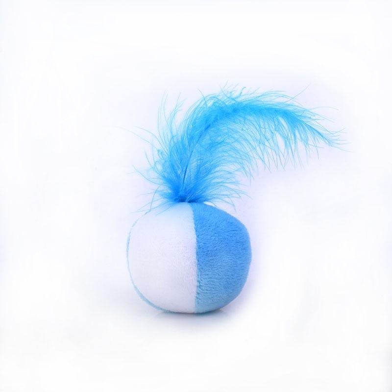 Product Category: Sound ToysColor: double spell rose red, double spell lake blueWeight: 11gmaterial: plushCategory: Pet ToysSize: 12*5cmMaterial: plush ball + feather, built-in bell and catnip