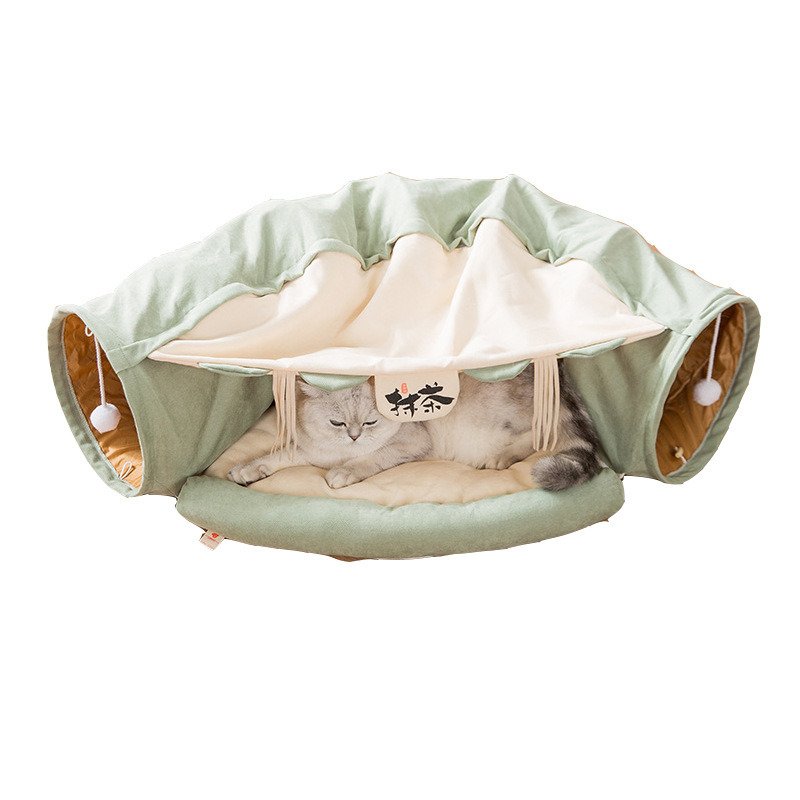 Beautiful and practical cat tunnel nests, mats and tunnels are detachable. It is a combination of toys and beds. It contains sound paper and toys, which caters to the habits that kittens like to hide.