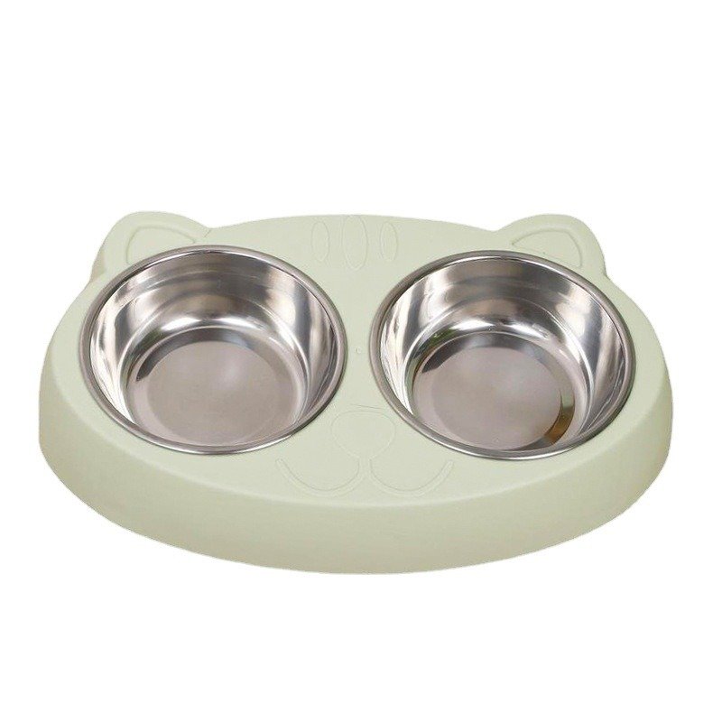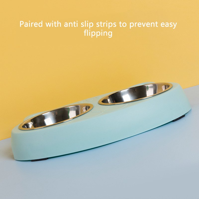 Home > Pet Double Bowls, Stainless Steel Pet Food Bowl Water Bowl With No Spill Plastic Stand, Pet Feeding And Drinking Bowl For Indoor Cats And Dogs