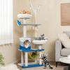 5.Cozy and Stable Structure: Covered with teddy fleece, the cat condo furniture provides a warm and inviting environment. Moreover, the teddy fleece wrapped half-round corners will minimize the injury to your beloved cats. Supported by a large base, the cat tree tower boasts excellent stability.
