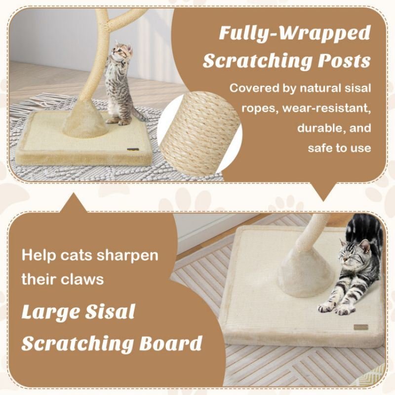 -The posts are covered by natural sisal ropes, safe, durable, and pet-friendly