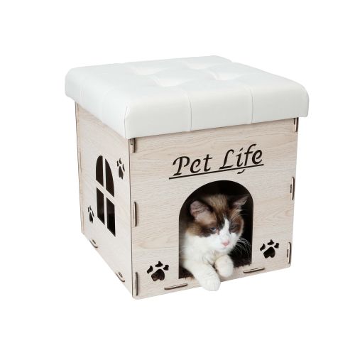 The Pet Life Foldaway collapsible Cat House Furniture bench easily assembles and collapses. Features a comfortable pleather cushion at the top useful for sitting on that can handle up to 300 lbs. of weight. Features playful designer carved entrance and windows great for light exposure or visibility. Comes with an ultra plush machine washable insert able polyester inner cushion great for lounging on. Great as a furniture piece and comes with multiple variation colorations to match and compliment the decor of any home. Great for multiple usages. Designed for smaller dog breeds and cats. Available in Multiple Colors.