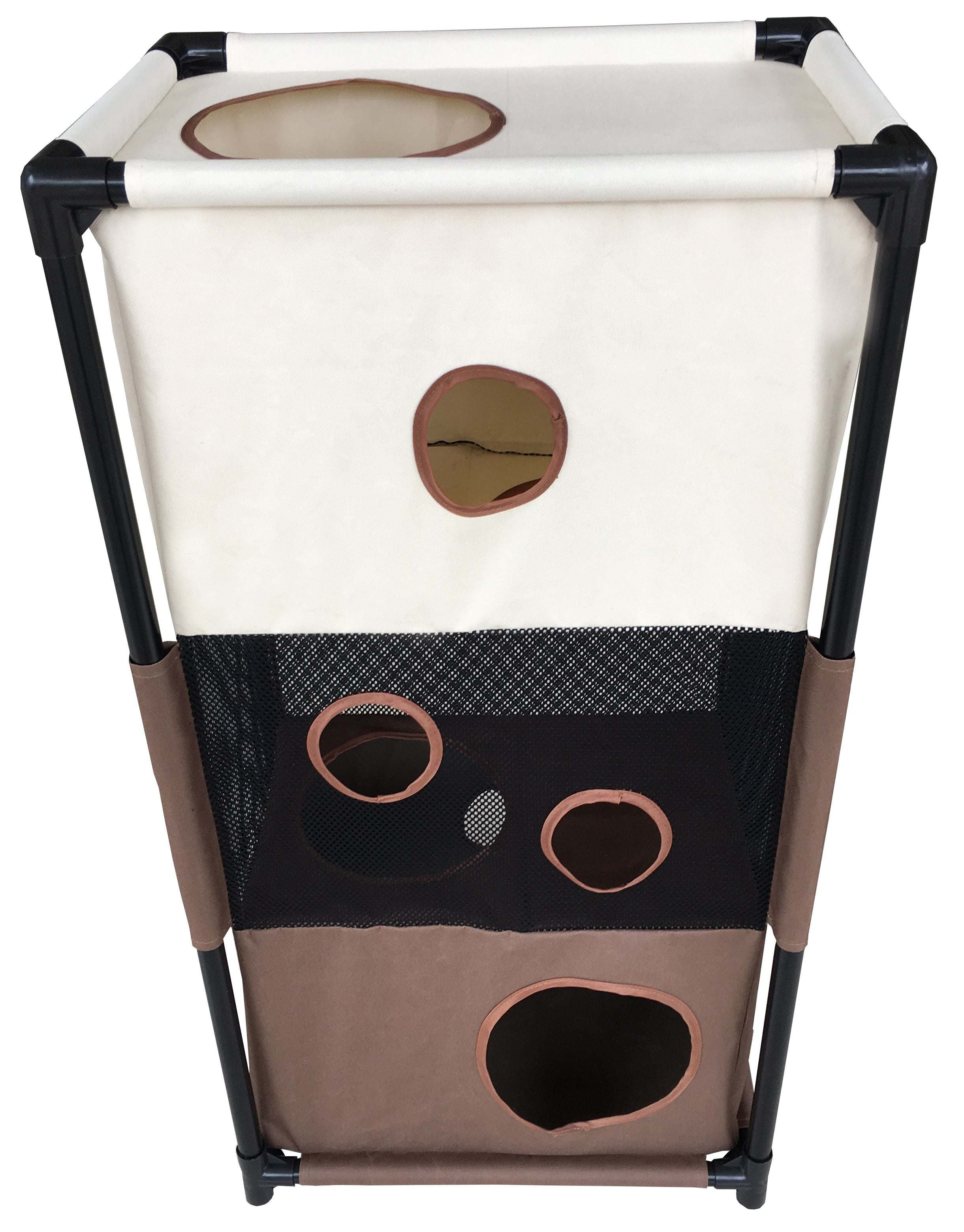 Pet Life Kitty-Square Obstacle Soft Folding Sturdy Play-Active Travel Collapsible Travel Pet Cat House Furniture - Khaki, Brown