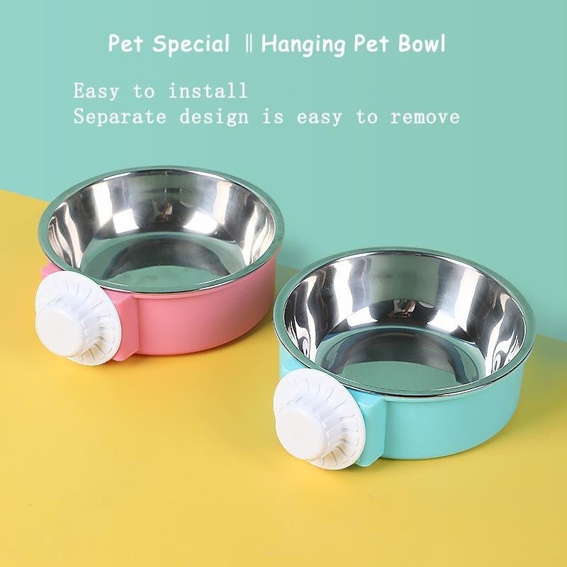 Home > Pet Stainless Steel Bowl Hanging Cage Type Fixed Cute Dog Basin Cat Supplies Puppy Food Drinking Water Feeder Pets Accessories - green - 17cm
