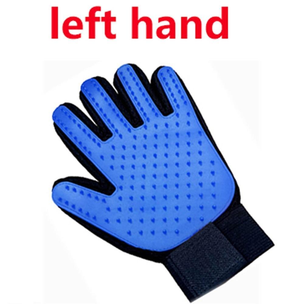 Dog Cat Pet Combs Grooming Deshedding Brush Gloves Effective Cleaning Back Massage Animal Bathing Fur Hair Removal - blue - Left