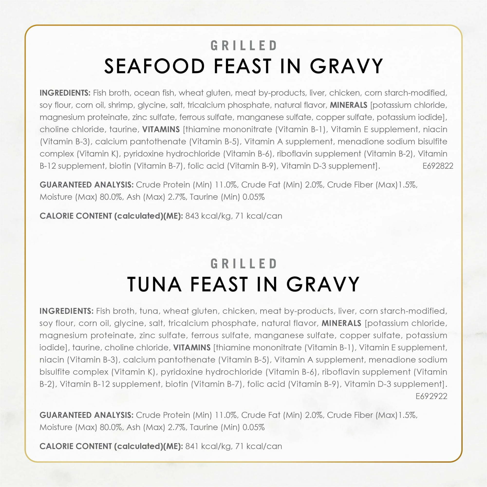 Fancy Feast Gravy Wet Cat Food Variety Pack, Demand the finer things in life for your pampered cat with this Purina Fancy Feast Grilled Seafood Feast Collection wet cat food. This variety pack features the delicious seafood flavors she craves most, including enticing Grilled Tuna Feast in Gravy, tantalizing Grilled Salmon Feast in Gravy, and palate-teasing Grilled Seafood Feast in Gravy. She depends on you to give her the nutrition she needs and the tastes she loves, and she gets that in this wet cat food collection.