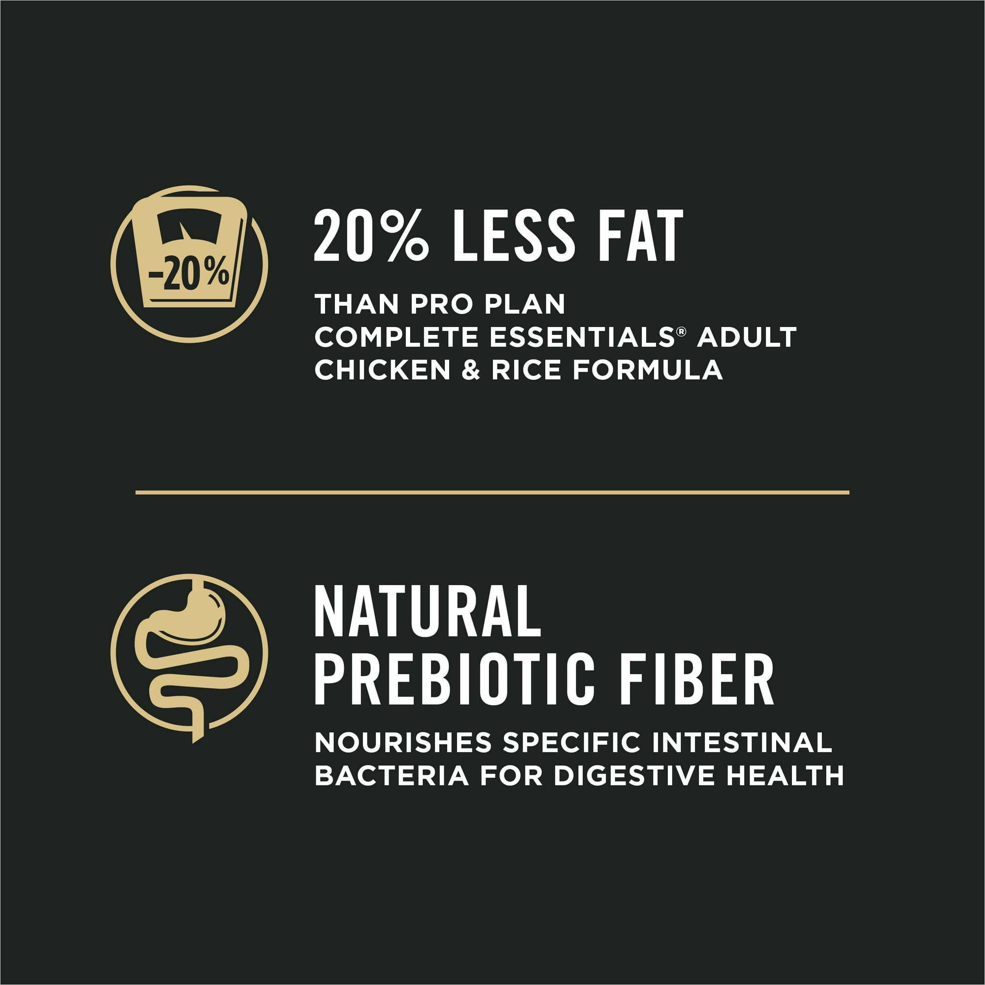 20 percent less fat than Pro Plan COMPLETE ESSENTIALS Adult Chicken & Rice Formula.